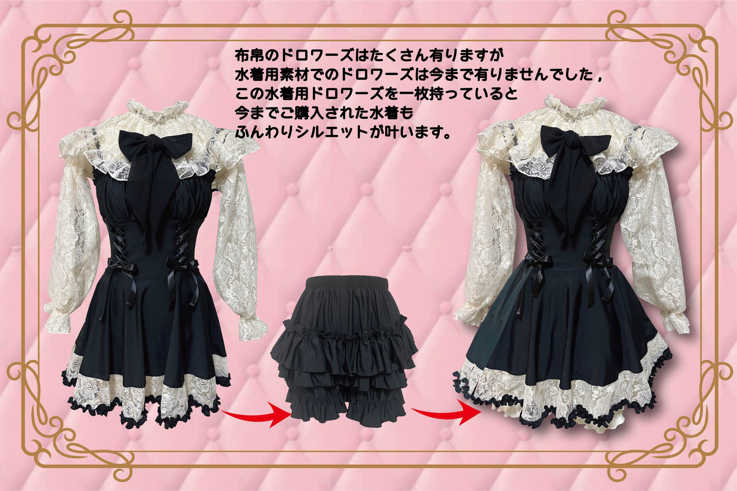 A swimwear brand that can be worn by Lolita girls, which has never been seen before, is expanding the Lolita culture that originated in Japan into swimwear! These are cute swimwear that make use of essential Lolita items such as head dresses, sleeve fasteners, frills and ribbons. It is aimed at all women who love cute things.